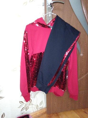 - Üst: yarımfermuarlı kapüşon, ön və arxa hissədə parlaq qırmızı payet aplikasiyası, sinədə kiçik payet loqotip detalı, rezin manjet və bel