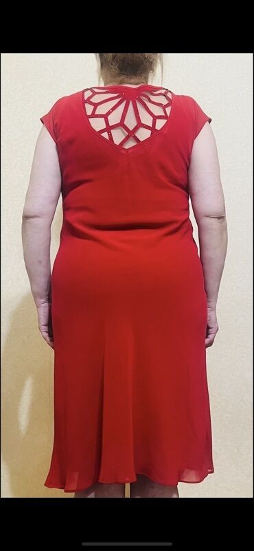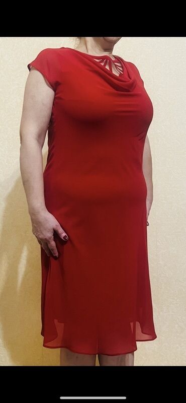 Təzədən seçilmir yeni kimidir 1dəfə geyinilib Qırmızı rəngdə elegant qadın paltarı - Dizayn: Sadə, klassik A-kəsim siluet; qısaqol. Hər iki çiyində krem rəngli iri güllə bəzək detalı. - Yaxa: Dəyir...