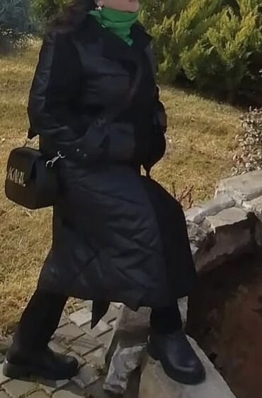 Qara qadın qış paltosu 80 man. - Uzun, yastı tikişli, isti şişmə