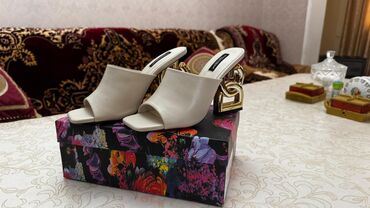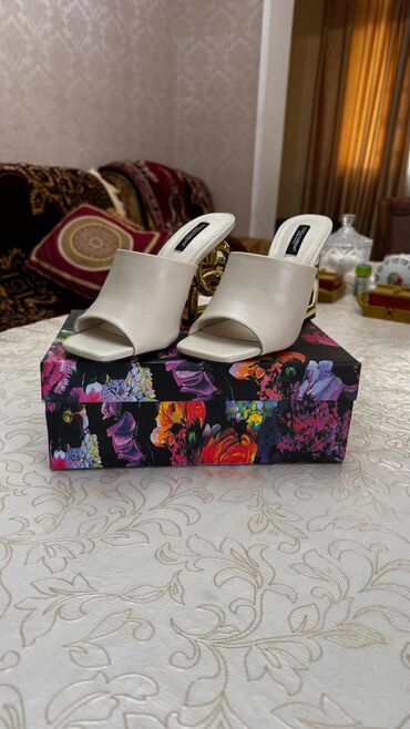 Rəngli dəri fakturalı, qızılı zəncirli çiyin çantası və uyğun açıq, şəffaf kəmərli, daş bəzəkli topuqlu terlik dəsti. - Çanta: göy qurşağı tonlarında krokodil naxışlı material, ön hissədə qızılı l...