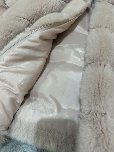 Qadınlar üçün süni kürk şuba/jaket - Rəng: açıq bej (krem tonları) - Material: yumşaq süni kürk, iç hissə parça astarlı - Model: qısa şuba tipli, düz kəsim, uzunqol - Yaxası: stand tipli (yüngül d...