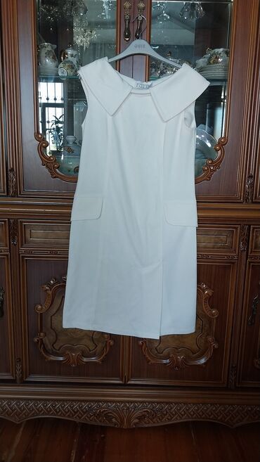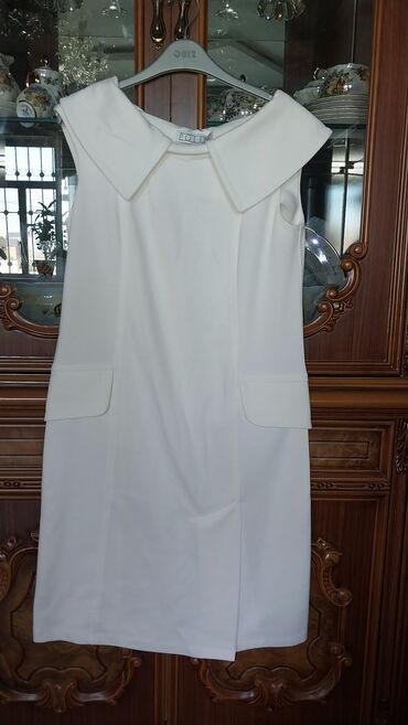 Zərif klassik qadın paltarı - Brend: Fusion - Ölçü: EUR 40 / UK 12 / USA 8 (etiketdə göstərilib) - Rəng: açıq bej - Model: qolsuz, dizə yaxın uzunluq, yüngül “V” formalı yaxa kəsimi - Kəsim: beldə...