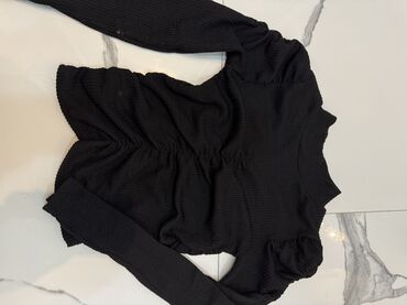 Qara rəngli qadın bluzası - Dizayn: Ön hissədə dekorativ açıq kəsik (cut-out) detallı, dar siluetli. - Parça: Nazik relyefli/rişotkalı trikotaj, elastik quruluş sayəsində bədəni saran komfortlu ot...