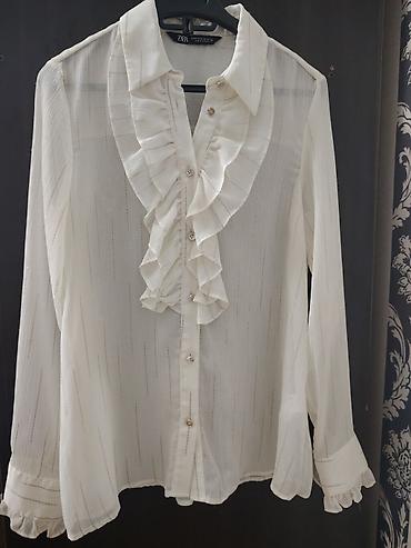 ZARA qadın bluzası - Rəng: krem/ağ - Modell: volanlı, klassik yaxalı