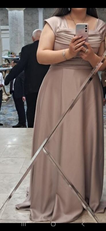 Zərif gecə/ziyafət donu 1 defe qeyinilib Əsil qiyməti 340 azn die - Rəng: açıq pudra/şampan. - Material: atlas parıltılı, yumşaq axan tekstura. - Dizayn: tək çiyin kəsimi (bir çiyindən keçir), üst...