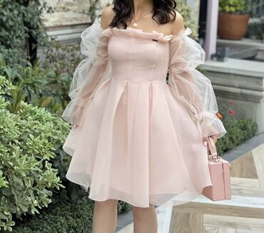 Don satılır ✨ Çox zərif pudra rəngində, off-shoulder dizaynda, tüllü