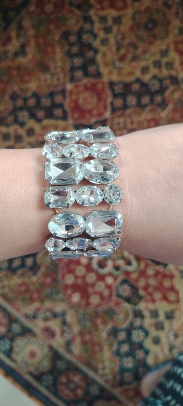 Qalın qolbaq 18 manat Qızıl göz muncuğu qolbaq 9 manat Qaşlı üzük (19razmer) 3 manat Adi üzük 3 manat Klounlu sep 18 manat Diqqqətlə oxuyub vatsappda yazın Zərif formalı daşlarla bəzədilmiş b...