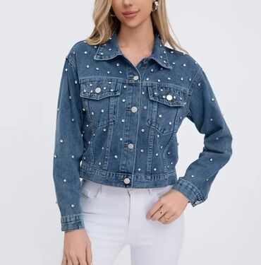 Qadınlar üçün muncuq bəzəkli cins gödəkcə