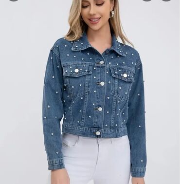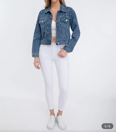 Qadınlar üçün denim ceket İkinci əldir, 1 ay müddətindəgeyinilib - Stil: Klassik qısa/kropped cins ceket - Rəng: Açıq mavi və orta mavi variantları - Material: Elastan qatışığı olan denim (bədənə ...