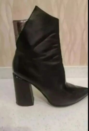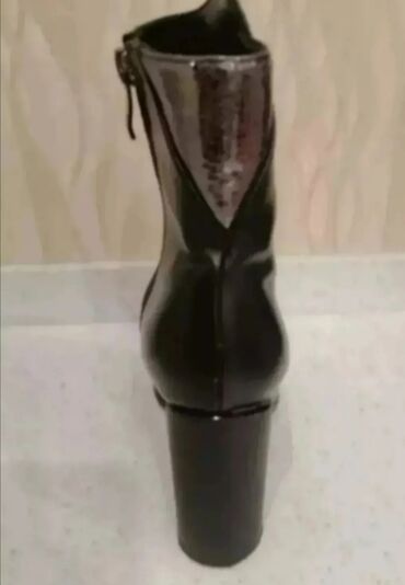 Qadın botları – qara, laklı, timsah naxışlı - Model: qısa boğazlı bot - Rəng: parlaq qara - Material: lak effekti olan, timsah dəri fakturalı üst - Bağlanma: yan tərəfdə fermuar - Burun forması: y...