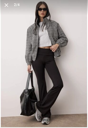 Qadın şalvarı – qara-boz rəng, geniş ətəkli (flare) kəsim. - Yüksək