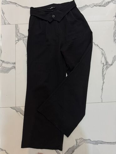 - Üst: Qara klassik şalvar. Yüksək belli, önündə böyük düyməli kəmər detalı, yan cibli, düz kəsim ayaqlar.