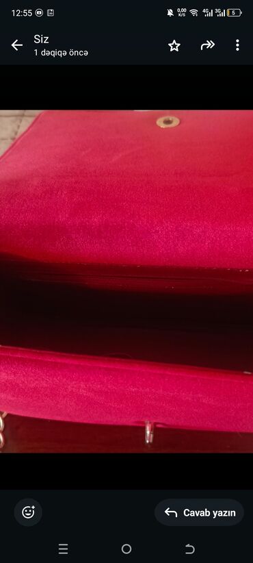 ChanelQırmızı samt teksturalı zəncirli çanta