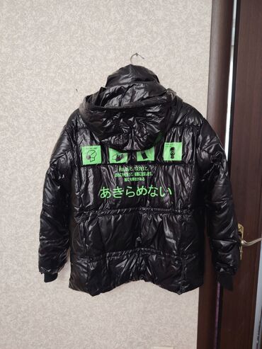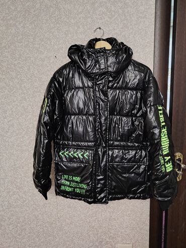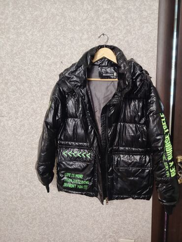 Digər naxışQara parlaq şişmə qış gödəkçəsi, kapüşonlu.