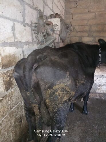 4 ci qarın 7 aylıq boğazdir təmiz qara ala sortdur tezə doğanda 20 litr süt verir yaxşı yaglı sütü var böyük maldır sakit maldır mala söz yoxdur sağlam maldır