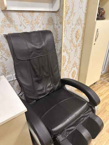 - Material: qara rəngdə süni dəridən oturacaq və arxa hissə, yumşaq və rahat qol dayaqları