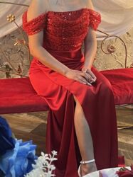 Bordo rəngdə, uzun qollu ziyafət donu. Üzərində krujeva və biserlərlə işləmələr var. Yuxarı hissəsi saçaqlı dizaynla tamamlanır. Yenidir, etiket üzərindədir. 300 azn alınıb 100 satılır. S ölçü . X...