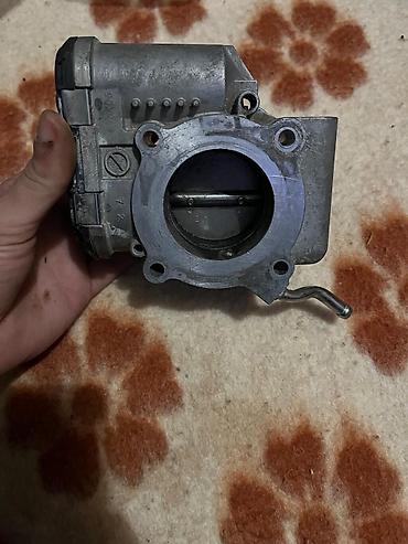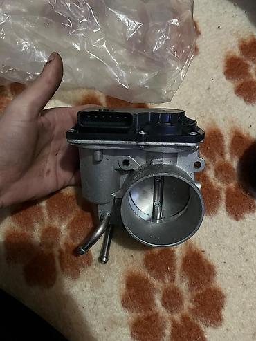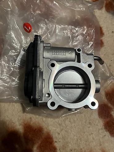 Gümüşü rəngdə, qara qapaqlı avtomobil qaz klapanı. Avtomobil mühərrikinin hava axınını tənzimləmək üçün nəzərdə tutulub. Avtomobilin mühərrikinin işləməsi üçün vacib olan hissədir. işlənmiş var.