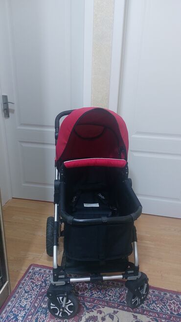 Uşaq arabası – qırmızı rəngdə, ulduz naxışlı. Xüsusiyyətlər: - Geniş və rahat oturacaq/uzanacaq hissə, arxalıq tənzimlənir. - Böyük, çoxseqmentli tent – külək və günəşdən qoruyur, üst hissədə hava...