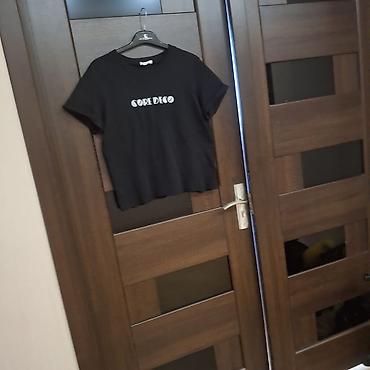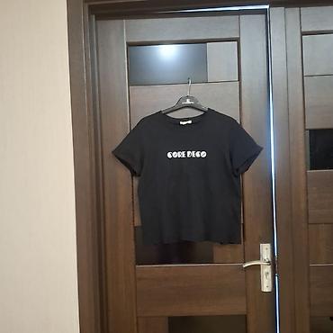 Qadın köynəyi – qısaqol, rib toxumalı parça. - Rəng: ağ-qaralı “tie-dye”/marmor effektli print. - Yaxa: dairəvi. - Ön hissə: asimmetrik kəsim və qatlanmış/örtüşən panellərlə dizayn, mərkəzdə kiç...