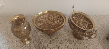 - Tərkib: 1 ədəd vazə, 1 ədəd dairəvi meyvə/qənnadı qabı (ayaqlı), 1 ədəd oval formalı qapaqsız konfet/meşğuliyyət qabı (yanlarında dekorativ tutacaqlar).