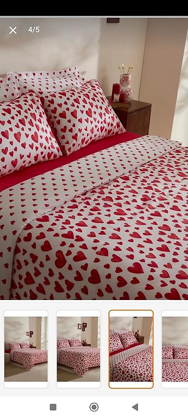 - Rəng və dizayn: Ağ fon üzərində müxtəlif ölçülü qırmızı ürək naxışları. Romantik və canlı görünüş.