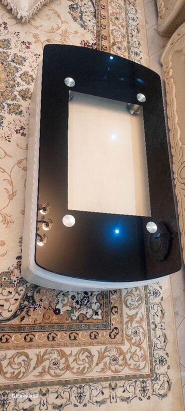 - Jurnal masası: üstü tünd şüşə, ortası şəffaf bölmə, metal bərkidicilər; alt baza yumşaq üzlü materialla