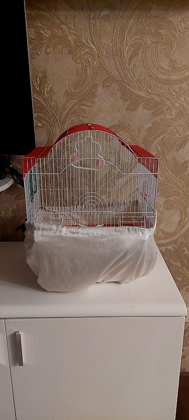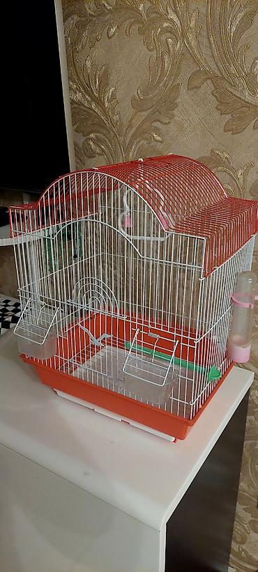 Quş qəfəsi – aksessuarlarla - Rəng: ağ metal barmaqlıq, qırmızı dam