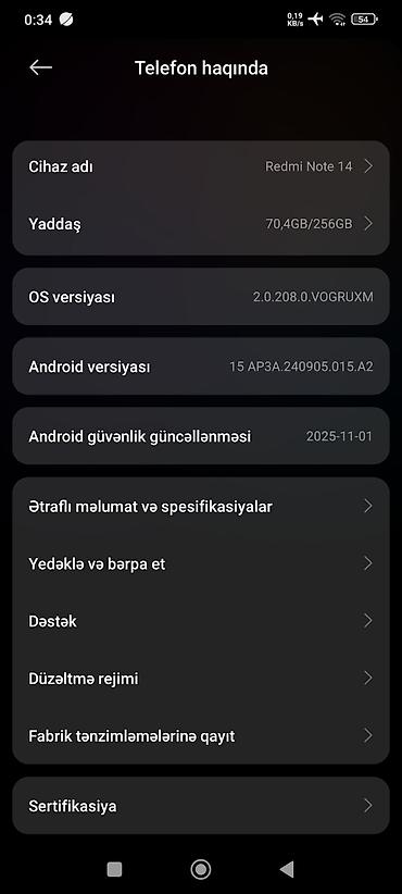 - “Telefon haqqında” bölməsində model Redmi Note 14 göstərilir