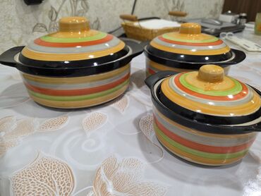 Ralaly firmasından emallı qazan dəsti. Dəstdə müxtəlif ölçülü 4 ədəd qazan var. Qazanların üzərində qırmızı güllərin təsviri var. Qazanlar yemək hazırlamaq və ya saxlamaq üçün idealdır.120 manat