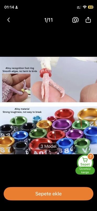 Məhsul: Quşlar üçün rəngli və nömrəli ayaq üzükləri
