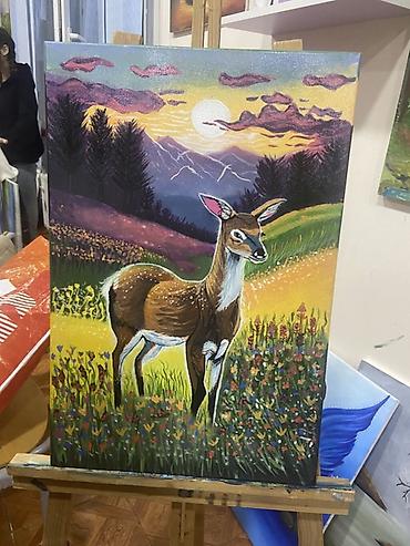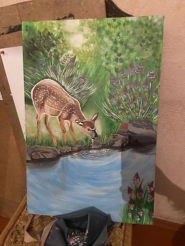 - Kətan üzərində akril boyalarla çəkilmiş orijinal təbiət və heyvan mövzulu rəsmlər: