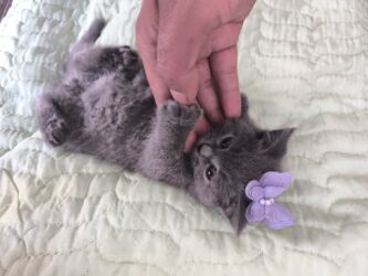 Balaca, boz rəngli pişik balası yeni ev axtarır. O, çox şirin və oynaqdır. Uşaqlarla və digər heyvanlarla yaxşı yola gedir. Bu pişik balası hər bir ailə üçün əla yoldaş olacaq.