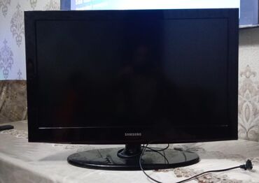 Samsung LCD televizor - Ekran: təxminən 26–32 düym diaqonal, wide-screen format - Panel: parlaq qara çərçivə, alt hissədə Samsung loqosu - Korpus: klassik dizayn, oval formalı sabit dayaq altlığı ...