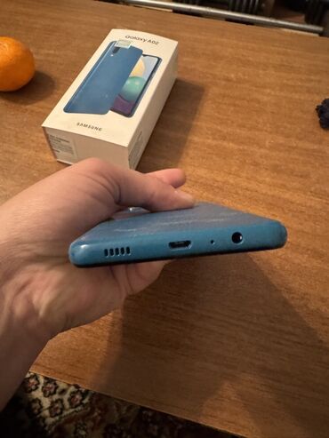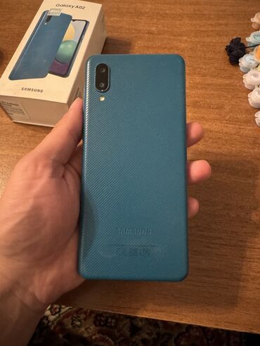 Samsung Galaxy A02 – mavi rəng - Model: Galaxy A02 (qutusu ilə) - Ekran: 6.5" Infinity‑V, geniş və parlaq panel - Kamera: Arxa ikili kamera modulu + LED flaş; ön kamera damcı‑notchda - Batareya: U...