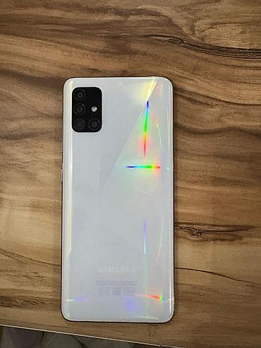Samsung Galaxy A51 – ağ rəng - Ekran: 6.5" Infinity‑O Super AMOLED, tam ekran dizaynı - Yaddaş/RAM: daxili yaddaş və RAM One UI interfeysi ilə sürətli iş üçün optimallaşdırılıb (microSD dəstəyi mö...