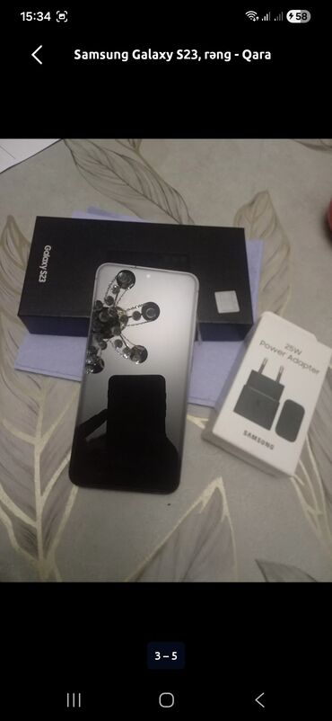 Kommplektasiya şəkillərdə: orijinal qutu və Samsung 25W Power Adapter. Qara rəngli model.256 yaddaş