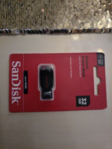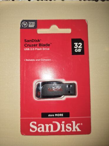SanDisk Cruzer Blade USB 2.0 Flash Drive – 32 GB. Yenidir, istifadə olunmayıb. Qutusu açılmayıb.
