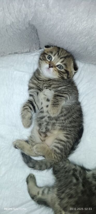 Skottish Fold balaları - Cins: Scottish Fold (qıvrıq qulaqlı) - Rənglər: boz zolaqlı və qızılı-zolaqlı (tabby) - Xəz: yumşaq, sıx, qısa/orta uzunluqda - Gözlər: iri, ifadəli, yuvarlaq - Qulaqlar: ...