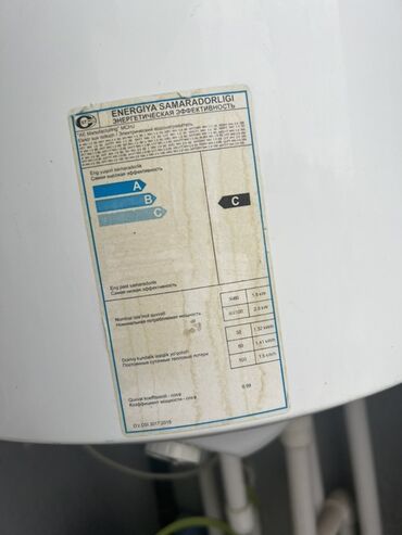 - Həcm variantları üçün gündəlik istilik itkiləri etiketdə göstərilib: 50 l – 1,32 kWh; 80 l – 1,41 kWh; 100 l – 1,5 kWh