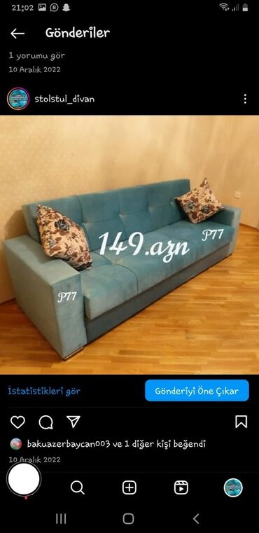 *SİFARİŞLE*Divan* *Qiymet 179💸 manat* ✨Rəng seçimi var ✨Ölçü uzunluq 2m10sm ✨ Açılan, Bazali ✨Keyfiyyətli parça ile ve 22"lik Qupka sıxlığı ilə hazırlanır* ✨Yastıq cütü 15 manat