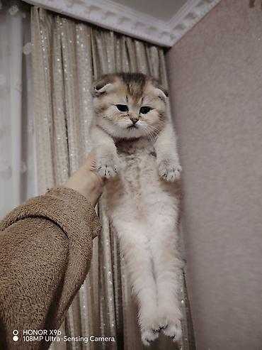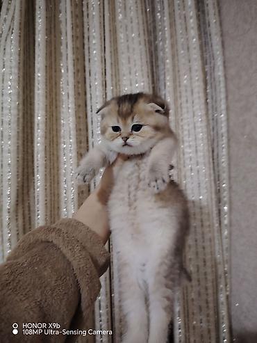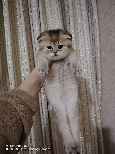 Şotland qıvrıqqulaq (Scottish Fold) balası - Rəng: qızılı-şaded (golden shaded), kürkü çox yumşaq və sıx - Qulaqlar: önə doğru qatlanmış - Gözlər: iri, yuvarlaq, zümrüd tonlarında - Quyruq: tüklü,...