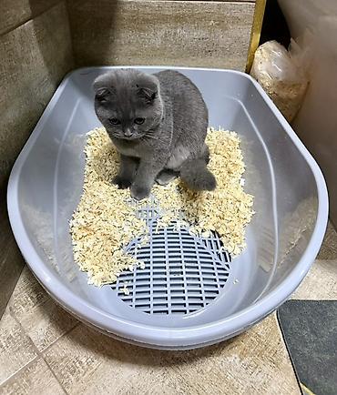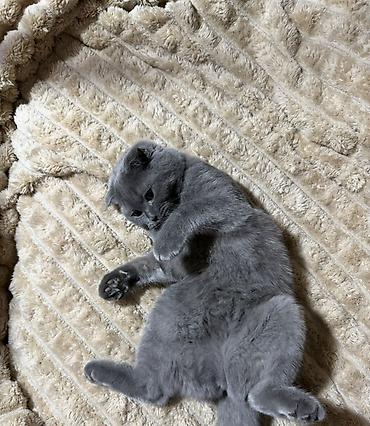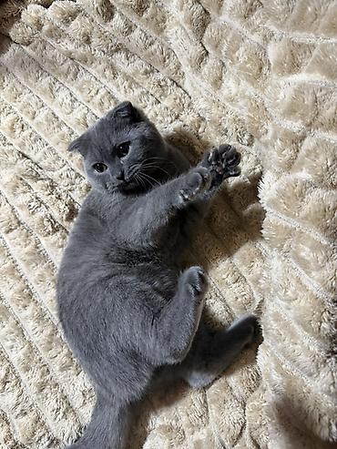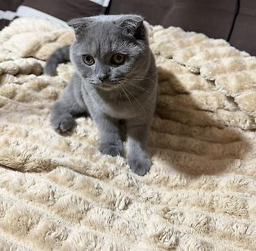 Məhsul: Scottish Fold balası (qıvrıq qulaqlı) Rəng: Solid boz (blue) Yun: Qalın, yumşaq, qısa tüklü Gözlər: Dairəvi, mavi-boz tonlu Qulaqlar: Irəli və aşağı qatlanmış tipik Scottish Fold quruluşu B...