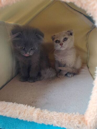 şotland sallaq qulaq(dişi) 80 manat rus mavisi dik qulaq(Erkey) 50 manat. tualet tərbiyəsi var quru korm yeyirlər qurd dərmanı verilib.sağlam və oynuyan pişiklərdir. ikisidə 3 aylıqdır.