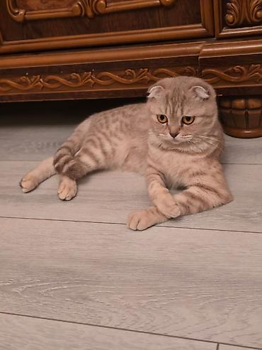whatsapp aktivdir Scottish Fold pişiyi - Cins: Scottish Fold (qulaqcıqları bükülü) - Rəng: qızılı/kremsi tünd naxışlı tabby - Xəz: sıx, yumşaq, qısa-orta uzunluqlu - Gözlər: iri, ifadəli - Xarak...