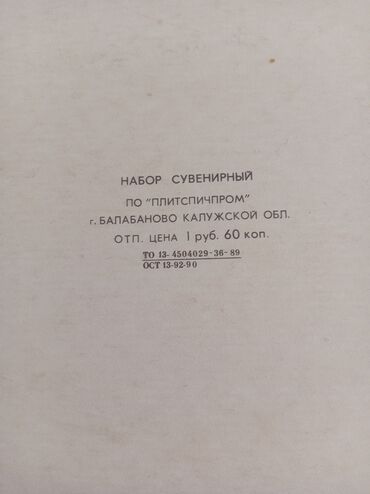 - Arxa tərəfdə istehsal məlumatı: “Набор сувенирный”, Balabanovo, Kaluga vilayəti, “Плитспичпром”. Markirovka: ТО 13-4504029-36-89, ОСТ 13-92-90.