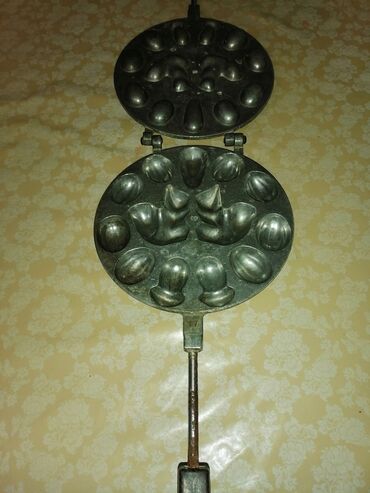 Sovetdən qalma vafli bişirən elektriklə işləyən, qoz,peçeni bişirən formalı qab,qazın,peçin üstə,2-si bir yerdə satılır