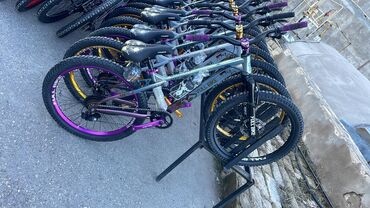 - Təkərlər: 29" bata‑bata protektorlu geniş şinlər; rəngli (bənövşəyi, qızılı və s.) gücləndirilmiş clincher halqalar