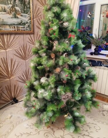 Süni Yeni il ağacı - Material: sıx və elastik PVC budaqlar, qar effekti ilə - Rəng: tünd yaşıl, uclarında yüngül ağ “şaxta” toxunuşu - Konstruksiya: 3 hissəli gövdə + metal dayaq; budaqlar asanlıq...