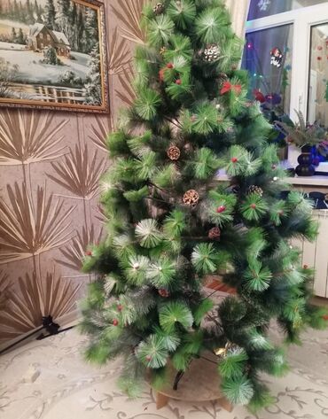 Məhsul: Süni Yeni il ağacı - Realistik görünüşlü, şam budaqlarını xatırladan sıx iynələr - Uclarında “qar” effekti verilmiş budaqlar - Qırmızı giləmeyvə bəzəkləri və təbii görünüşlü şam qozaları -...